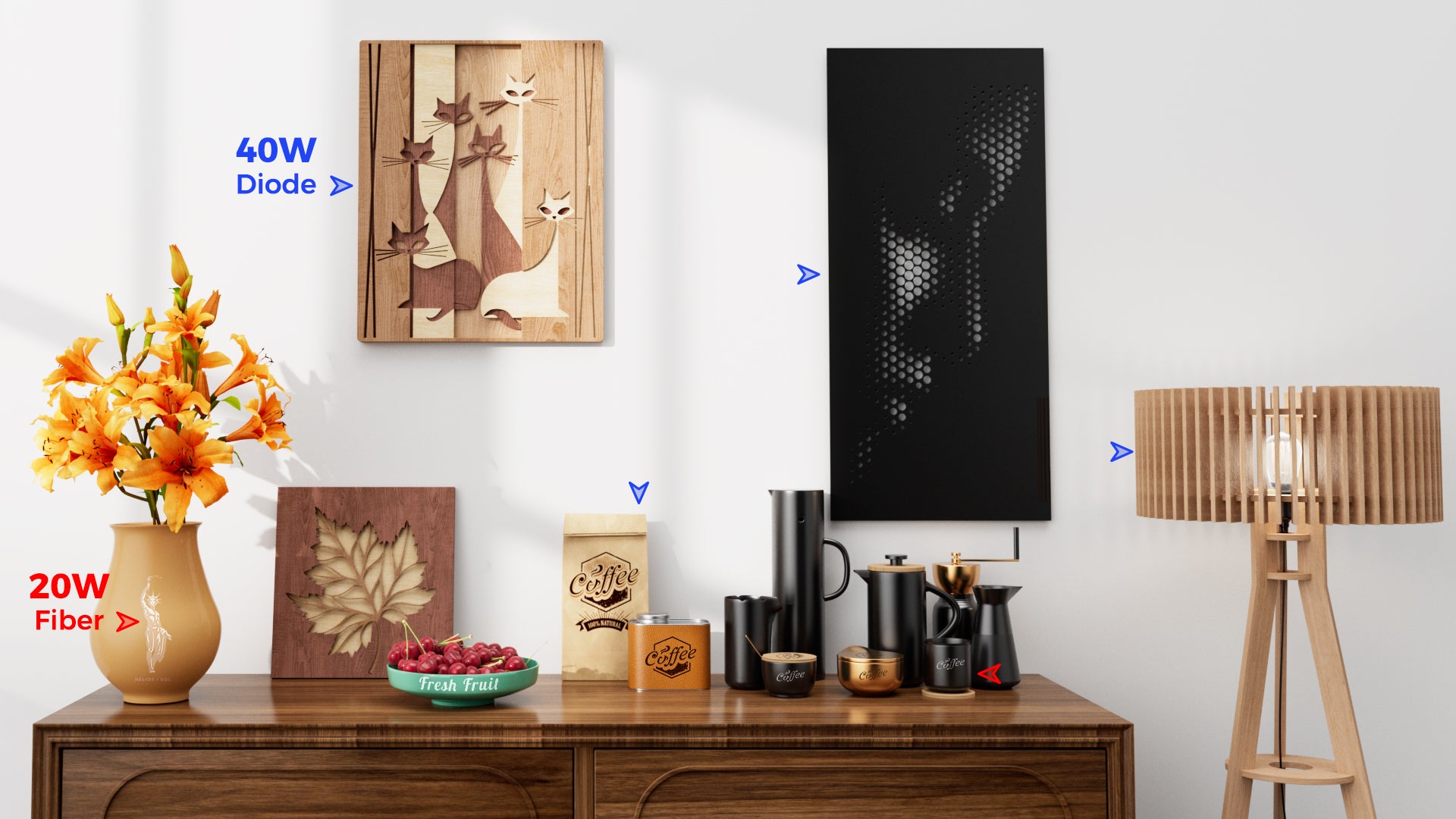 Equipada con un láser de fibra de 20 W y un láser de diodo de 40 W, la A9 Ultra Dual ofrece un procesamiento impecable en más de 350 materiales. Su área de trabajo ultraamplia la hace accesible a un abanico creativo infinito, permitiendo que cada proyecto trascienda los límites de la imaginación.