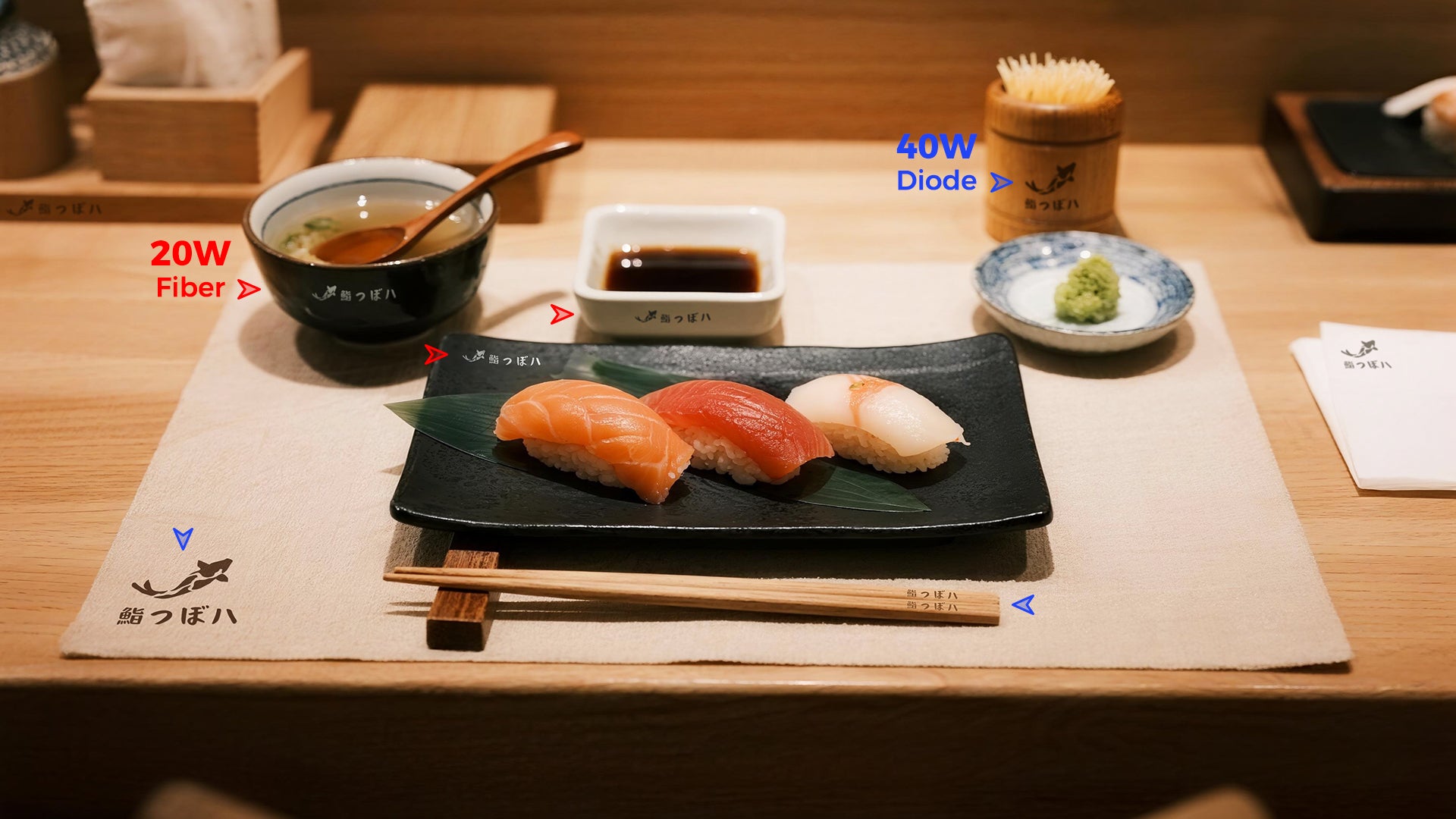 Conmutación láser dual: fibra de 20 W + diodo de 40 W