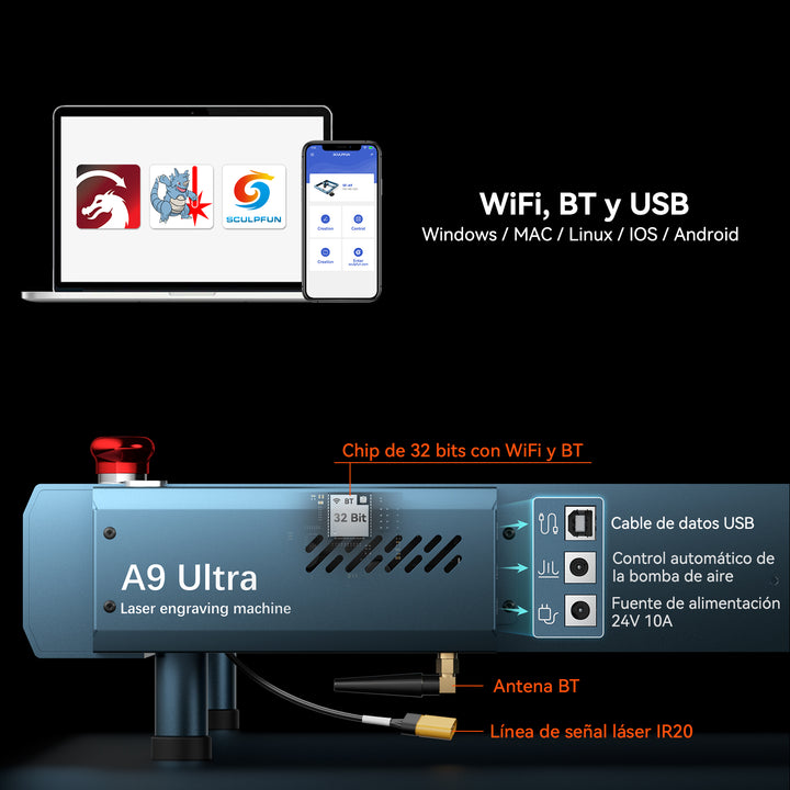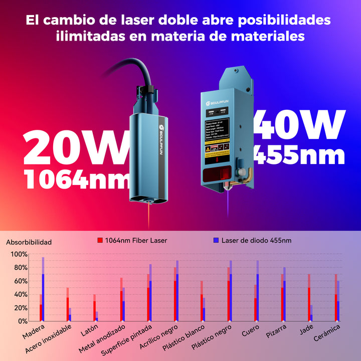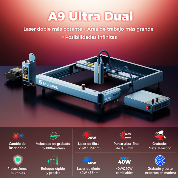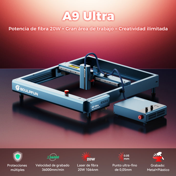 【Preventa】SCULPFUN A9 Ultra Máquina Láser 20W de Fibra y 40W de Diodo 2 en 1 para Grabado en Metales y No Metales