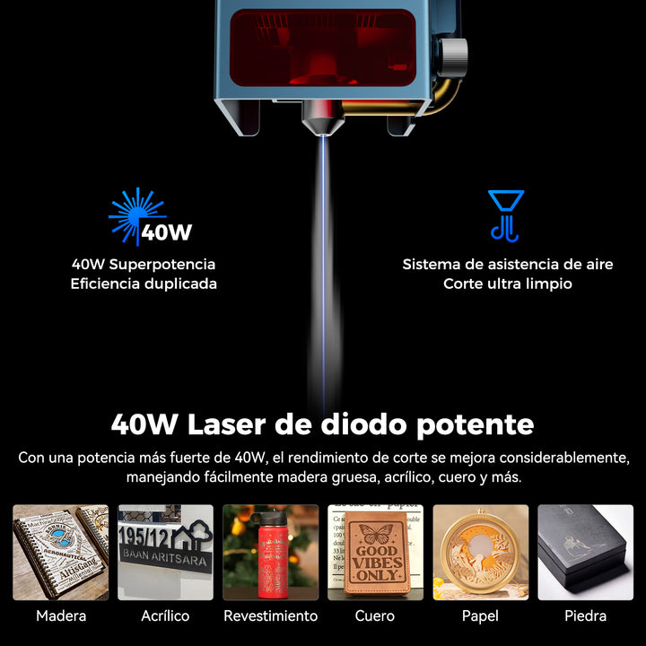 Láser de diodo de 40 W: corte potente, grabado preciso