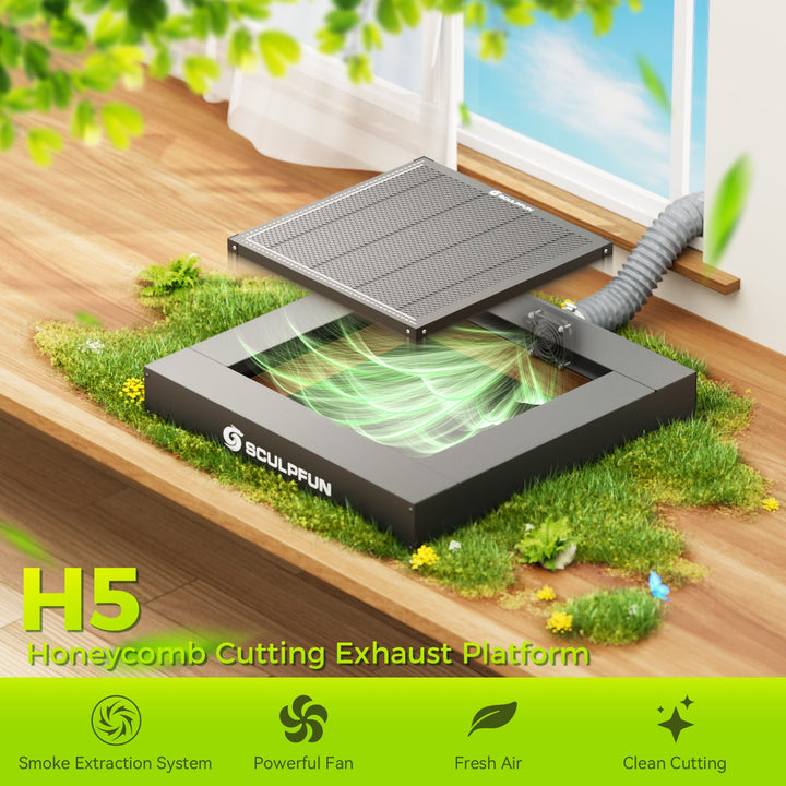 SCULPFUN H5 Gen2 Plataforma de escape de corte de panal Cama láser de panal de 650 × 650 mm con ventilador de extracción de humos