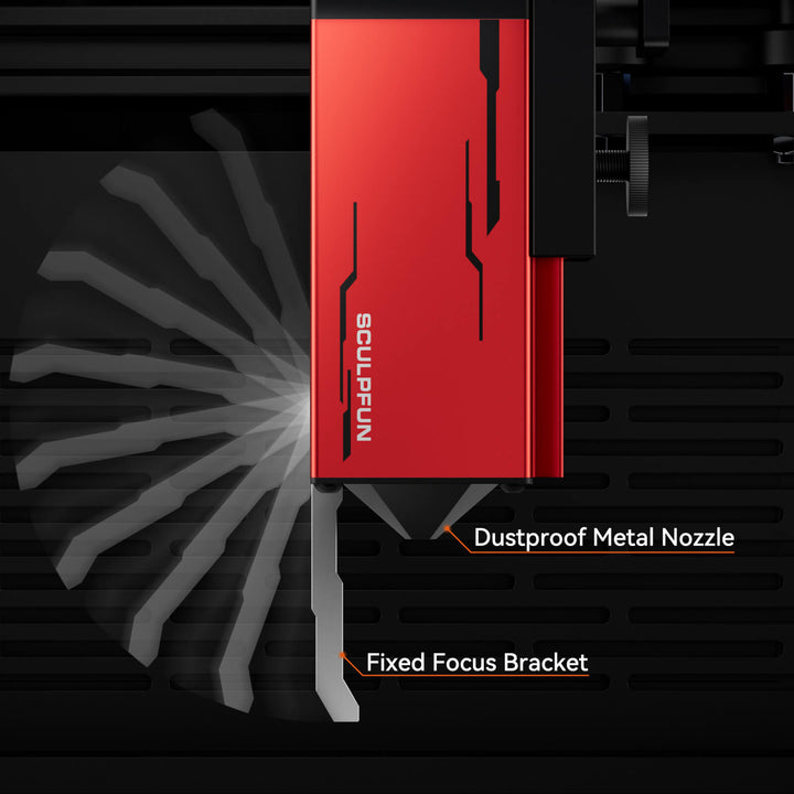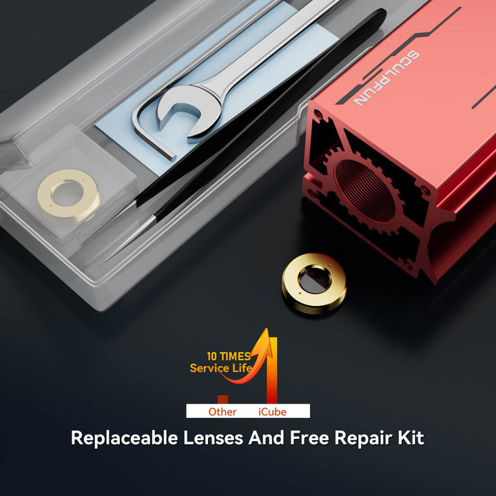 7. Lente láser reemplazable: La serie Sculpfun iCube incorpora un innovador cabezal láser que permite reemplazar la lente, lo que prolonga considerablemente su vida útil, 10 veces más que la de otros láseres convencionales. Si la lente se daña o se ensucia después de un uso prolongado, se puede reemplazar para restaurar la potencia de corte.