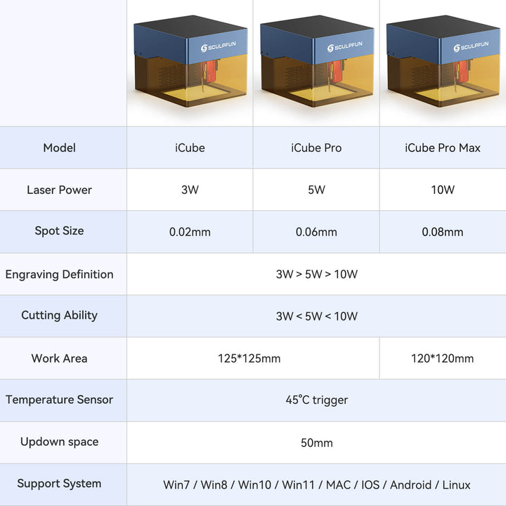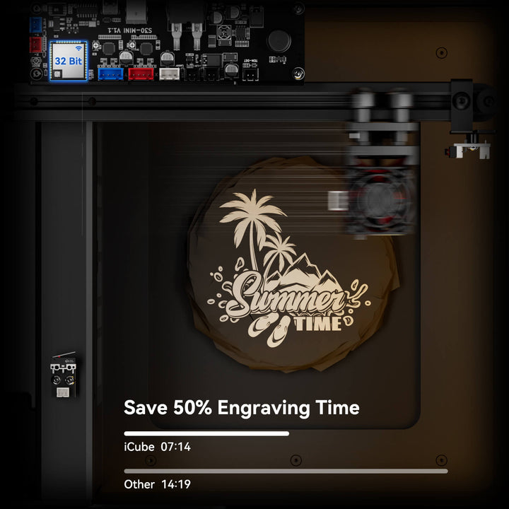 2. Grabado de alta velocidad: La grabadora láser iCube de 3 W, con placa base de 32 bits, mejora considerablemente la eficiencia de grabado, alcanzando una velocidad de 10 000 mm/min.