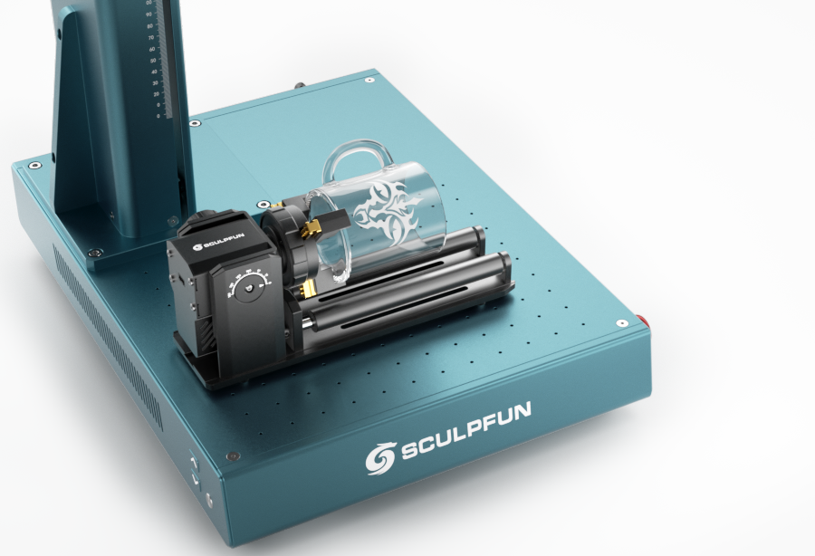 Compatible con accesorios de mandril y rodillo para grabado de superficies curvas. También se puede combinar con una extensión deslizante para ampliar el área de trabajo.